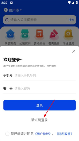 3、在验证码登录页面,输入信息,同意协议后点击登录,完成账号登录。