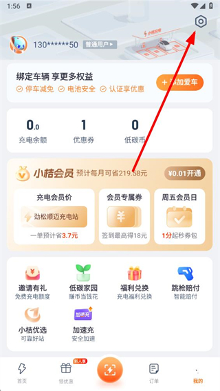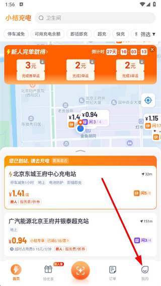 1、打开小桔充电APP,点击右下角我的进入个人页面。