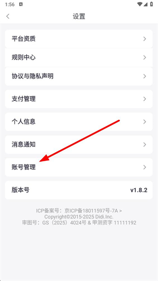 3、进入设置页面后,点击账号管理选项。