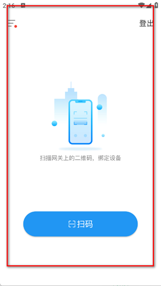 3、登录后,进入首页,点击扫码按钮,完成设备绑定。