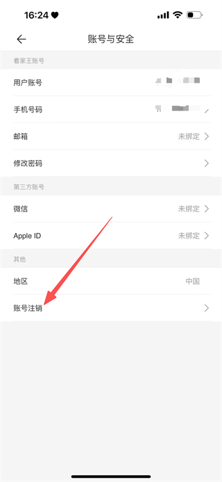4、在账号与安全页面,点击账号注销,进入账号注销说明页面。