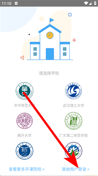 2、在学校选择页面,点击其他用户登录,进入登录页面。