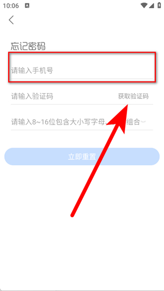 3、进入页面,输入手机号,点击获取验证码。