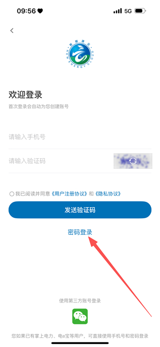 2、在页面,点击密码登录,进入密码登录页面。