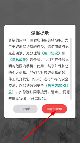 1、在温馨提示弹窗中,点击同意,进入APP首页。