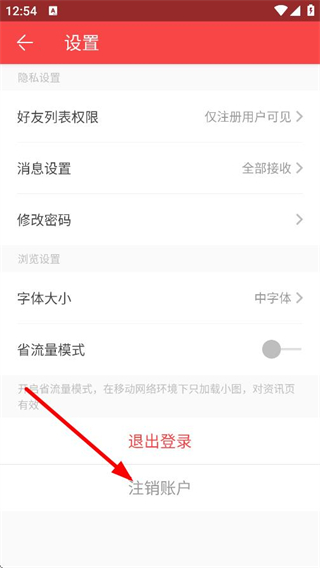 4、在设置页面,点击注销账户,按提示完成账号注销操作。