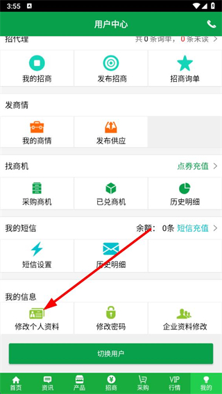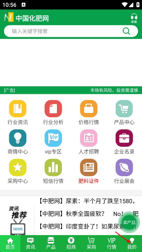 1、打开中国化肥网APP,点击右下角我的进入用户中心页面。