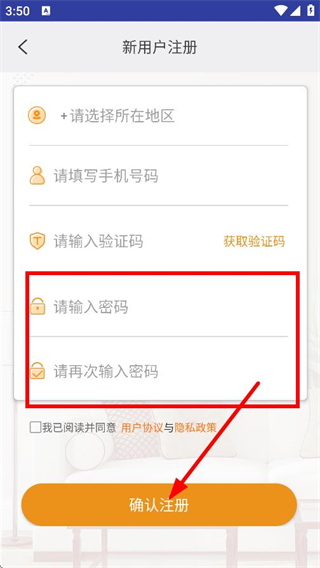4、随后我们可以设置密码并再次输入,点击确认注册,完成账号注册操作。