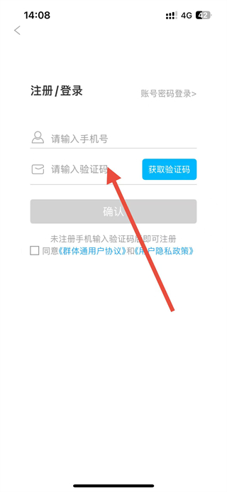 3、进入注册登录页面后,输入手机号码,获取验证码并,勾选相关协议后,点击确认按钮。