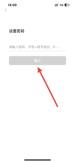 4、在设置密码页面,设置密码,点击确认按钮即可完成账号注册操作。