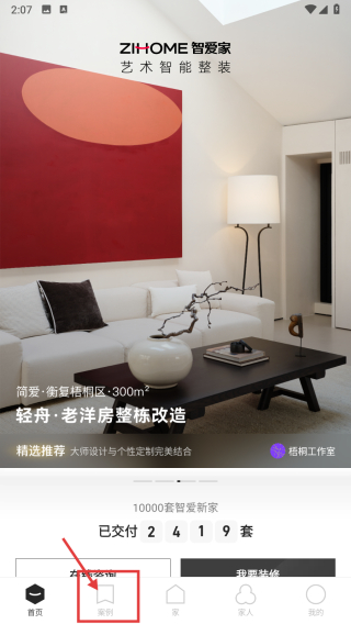 1、打开家装类APP首页,点击底部案例选项,进入案例页面。