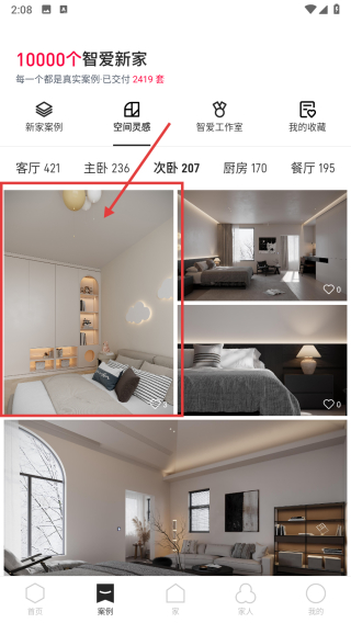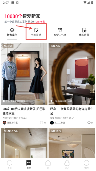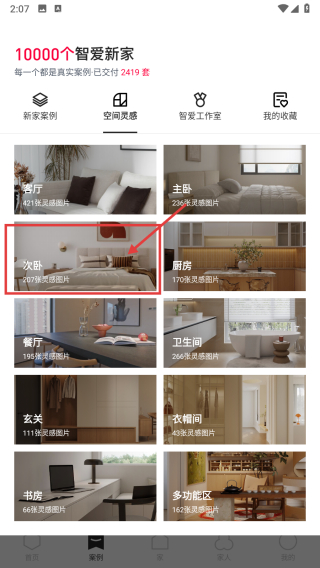 2、在案例页面,点击空间灵感板块,进入空间灵感分类页面。