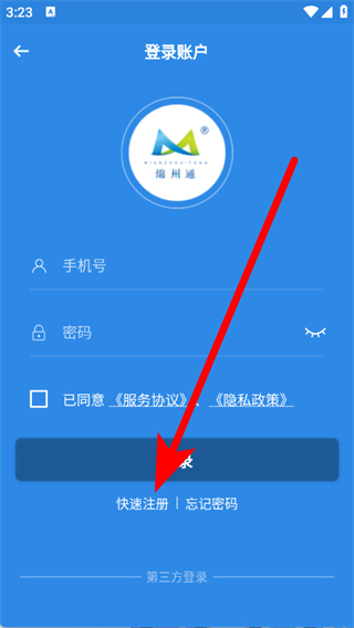 3、进入登录账户页面,点击快速注册,进入注册页面。