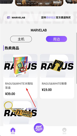1、在奇妙拉比商城页面,点击周边选项,进入周边商品页面。