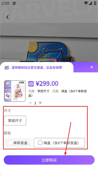 3、在商品详情页面,点击立即购买按钮,进入商品规格选择页面。