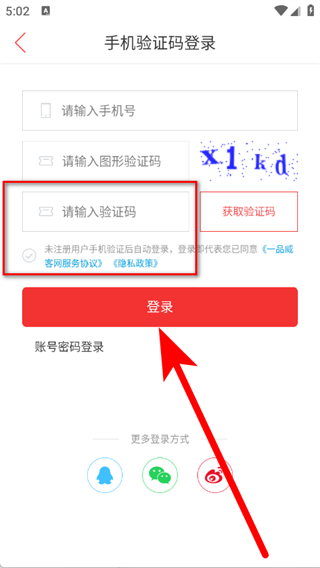 4、输入收到的验证码,点击登录按钮,完成账号登录操作。