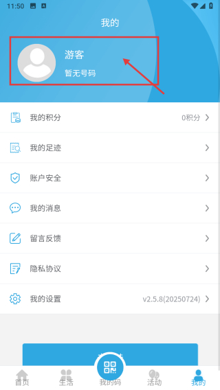2、在个人中心,点击游客账号区域,触发登录提示弹窗。