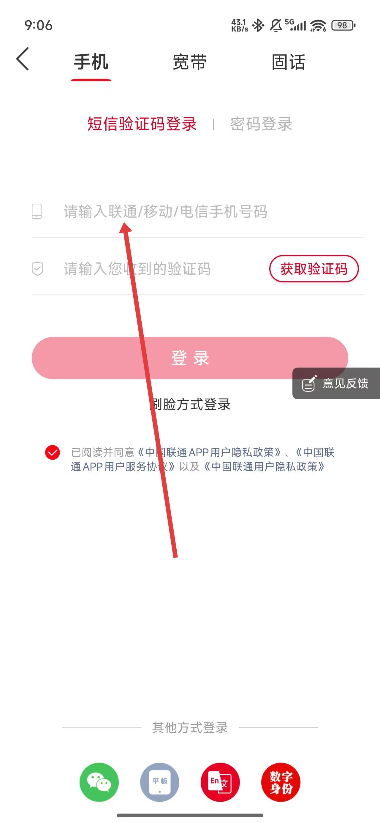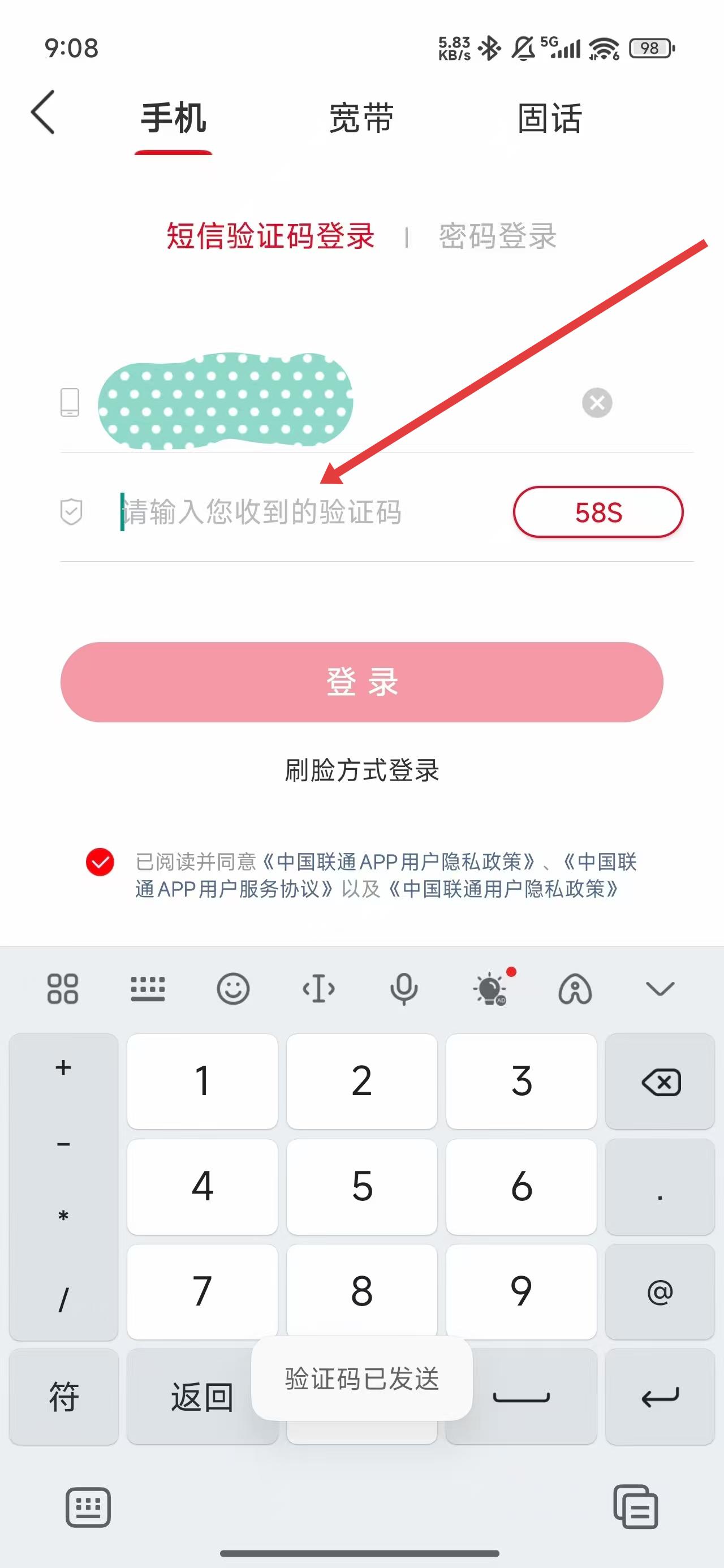 4、在点击获取验证码后,点击输入框输入验证码完成登录操作。
