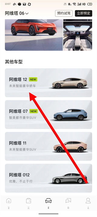 2、在车型页面,选择阿维塔12车型,进入介绍页面。