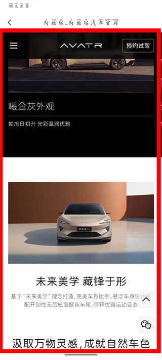 4、在车型详情页面,查看阿维塔12的外观、设计理念等全方位资讯。