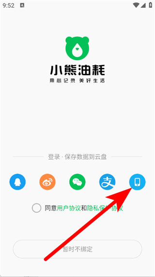1、打开小熊油耗,在弹窗中点击同意并继续,进入登录方式选择页面。