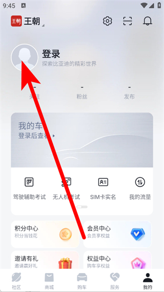 1、打开比亚迪汽车,点击底部导航栏我的,进入个人页面。