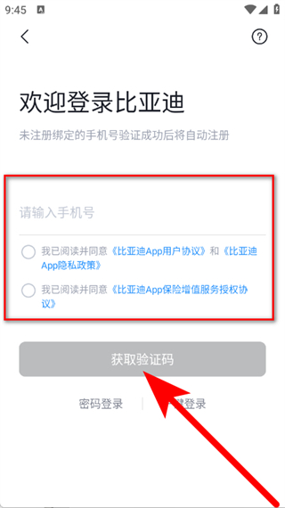 3、在登录页面,输入手机号,勾选同意及相关协议,点击获取验证码。
