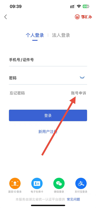 1、打开鄂汇办app,在我的页面点击登录区域,进入登录界面。