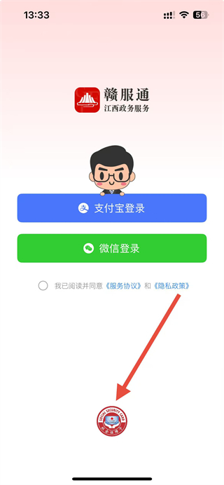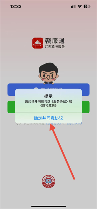 1、点开赣服通App后,通过点击弹窗中的同意按钮,进入使用。