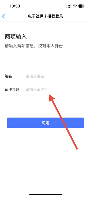 3、在页面输入姓名和证件号码,点击确定按钮,即可完成社保卡登录账号操作。
