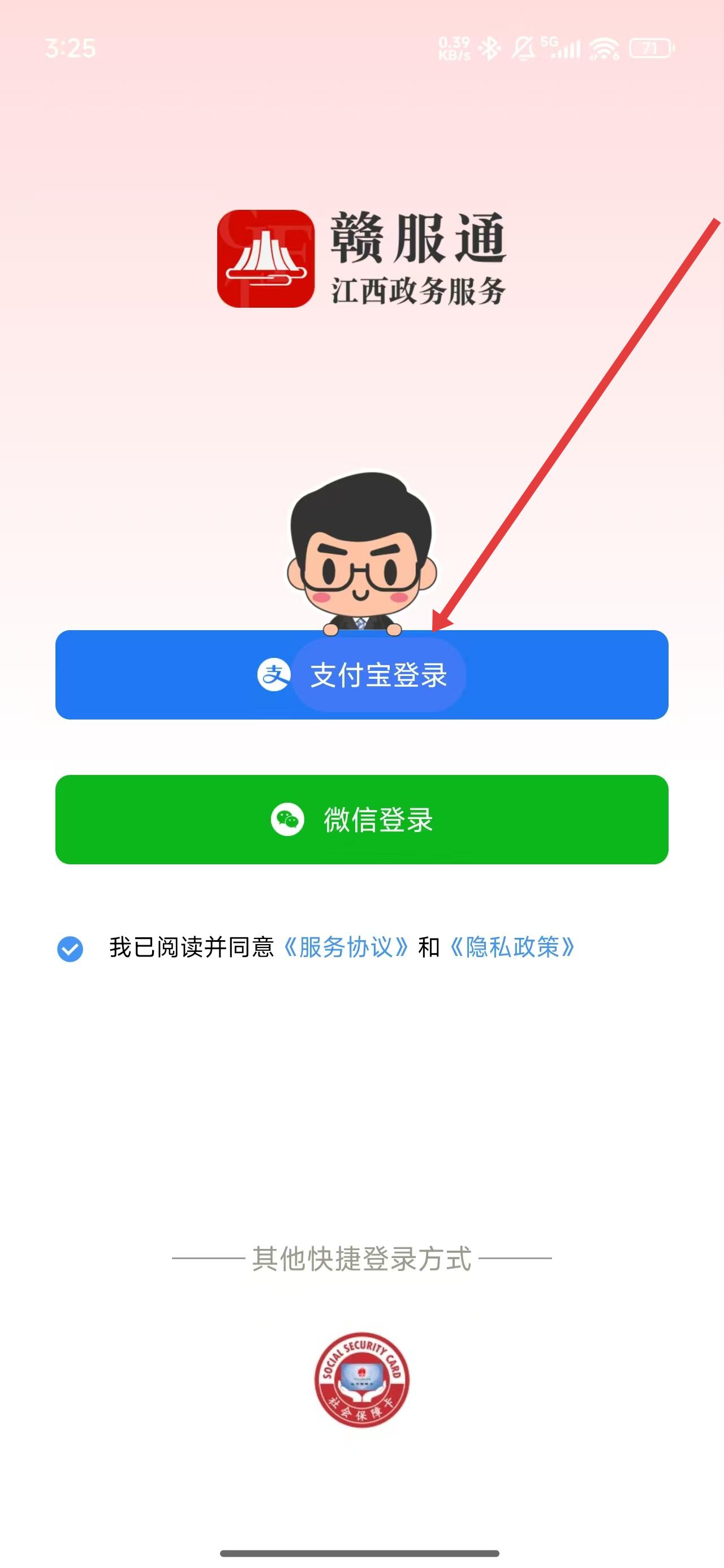 01、打开赣服通app或者在支付宝中搜索“赣服通”选择官方应用进入,切换所在地,并授权登录