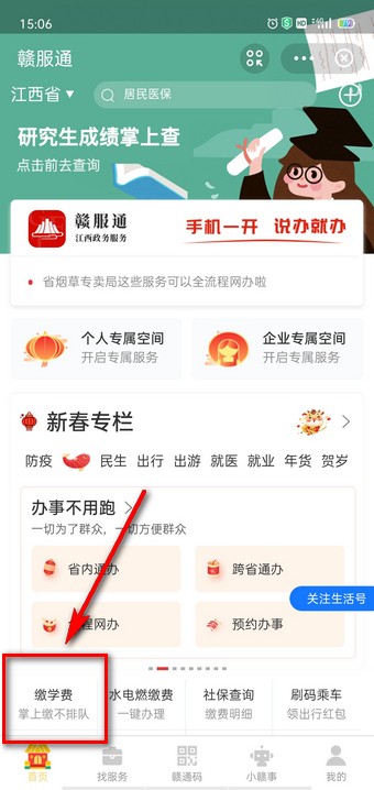 02、在首页我们就可以看到下方有一个缴学费,点击进入