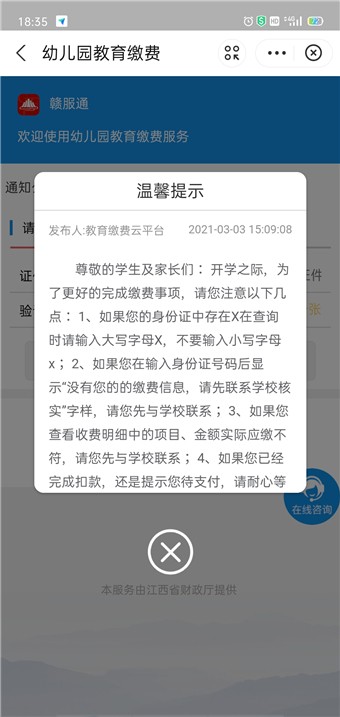 3.如果您查看收费明细中的项目、金额实际应缴不符,请您先与学校联系;