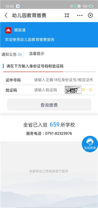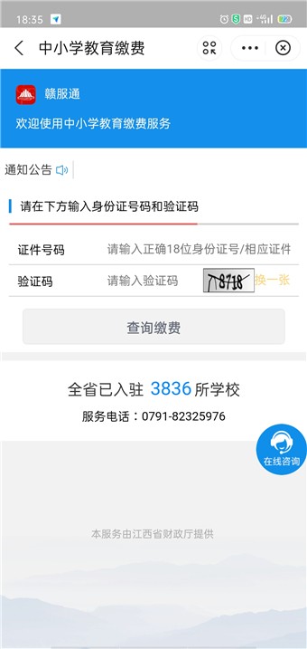 04、输入学生身份证号,填写验证码,查看学费,缴费即可完成
