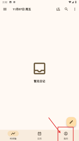 1、打开日记类APP,点击底部我的选项,进入个人中心页面。