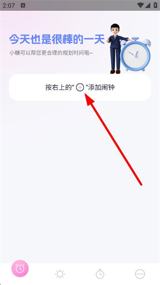 2、随后我们可以在主界面,点击右上的+号,进入新建闹钟页面。