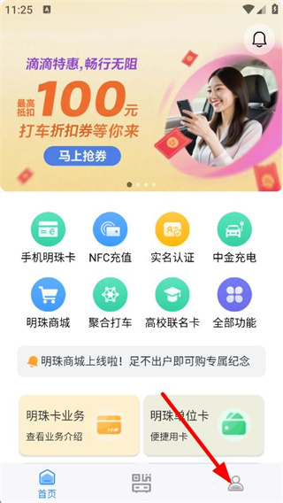 1、在大连明珠卡的首页,点击底部我的,进入个人页面。