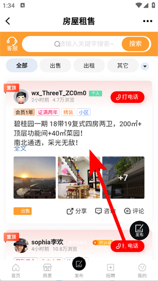 2、在分类信息,点击选择房屋租售,进入房屋租售信息列表页。