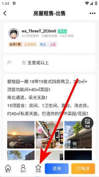 4、在房源详情页,点击收藏按钮,收藏该房源。