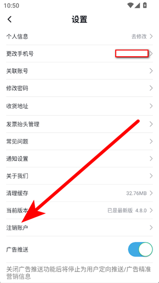 3、在设置页面,下滑点击注销账户,进入注销页面。