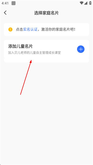 2、在选择家庭名片页面,点击添加儿童名片选项,进入新建儿童名片页面。