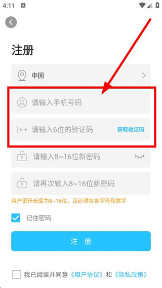 4、随后设置密码并再次确认后点击注册,完成注册操作。