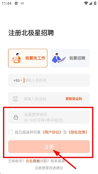4、设置登录密码,随后我们立即点击注册,完成注册操作。