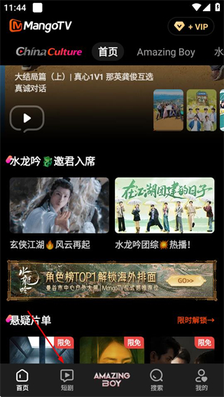 1、在芒果TV首页,点击下方短剧选项,进入短剧页面。