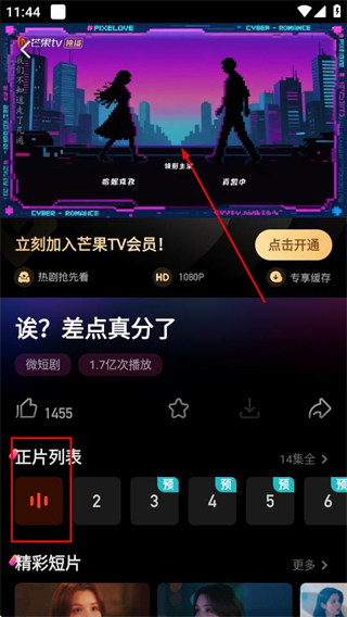 2、在短剧页面,选择感兴趣的短剧,进入短剧播放页面。