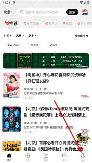 4.用户在首页可以看到秀动独家推荐的演出,点击进去后可以看到相应的演出列表。