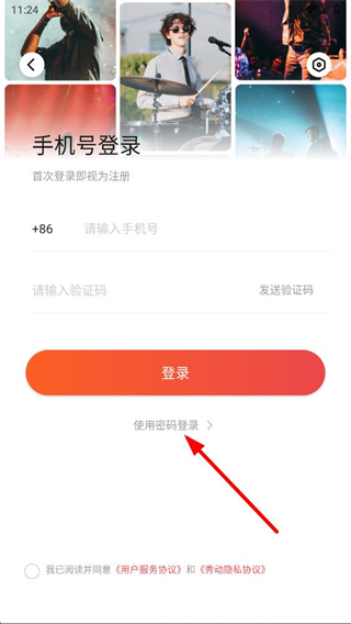 2、若未登录,点击个人主页会直接弹出登录页面,再点击使用密码登录。