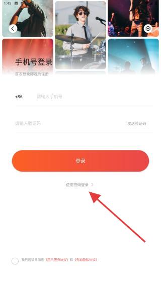 2、在登录界面,点击使用密码登录选项,进入密码登录页面。