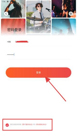 4、再输入密码后,勾选我已阅读并同意用户协议和隐私政策,再点击登录的按钮即可。