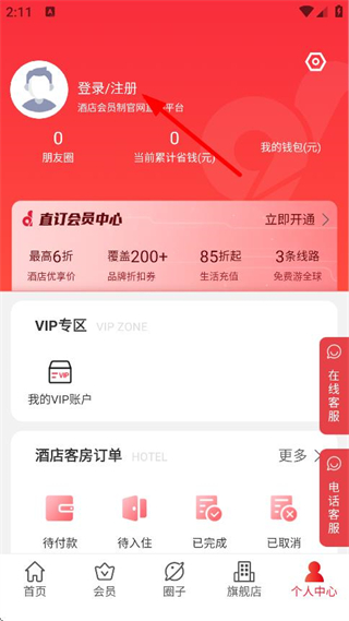 2、在页面,点击登录/注册,进入手机验证码登录页面。